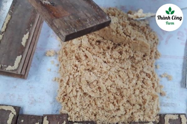 Cho hỗn hợp hợp Cám gà con, nước, bã đậu vào khay ủ, trộn lên. Độ ẩm 60%